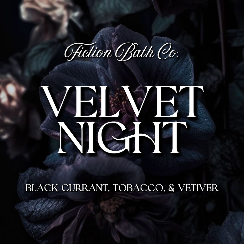 Velvet Night — black currant, tobacco, vetiver, and dark musk wrapped in midnight opulence